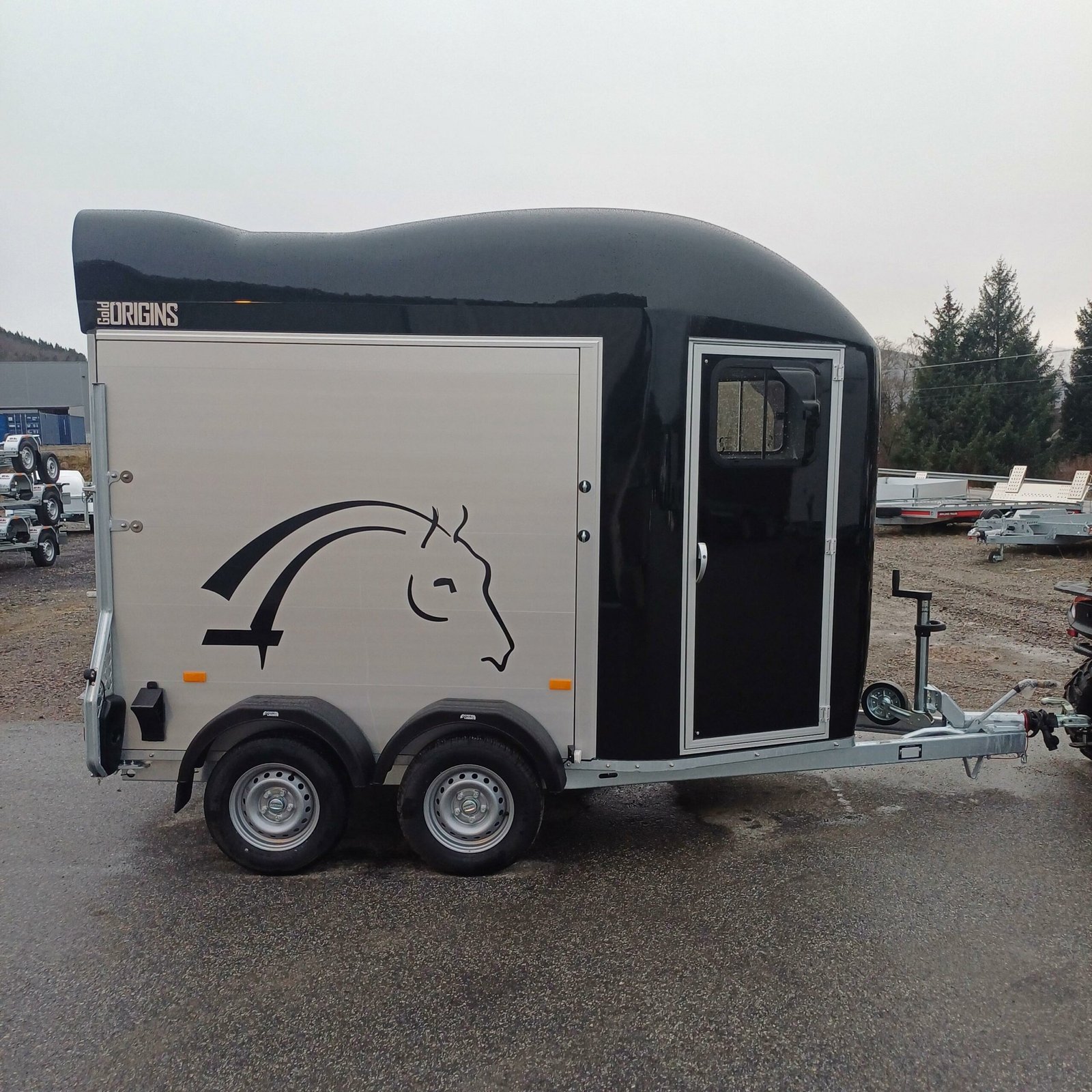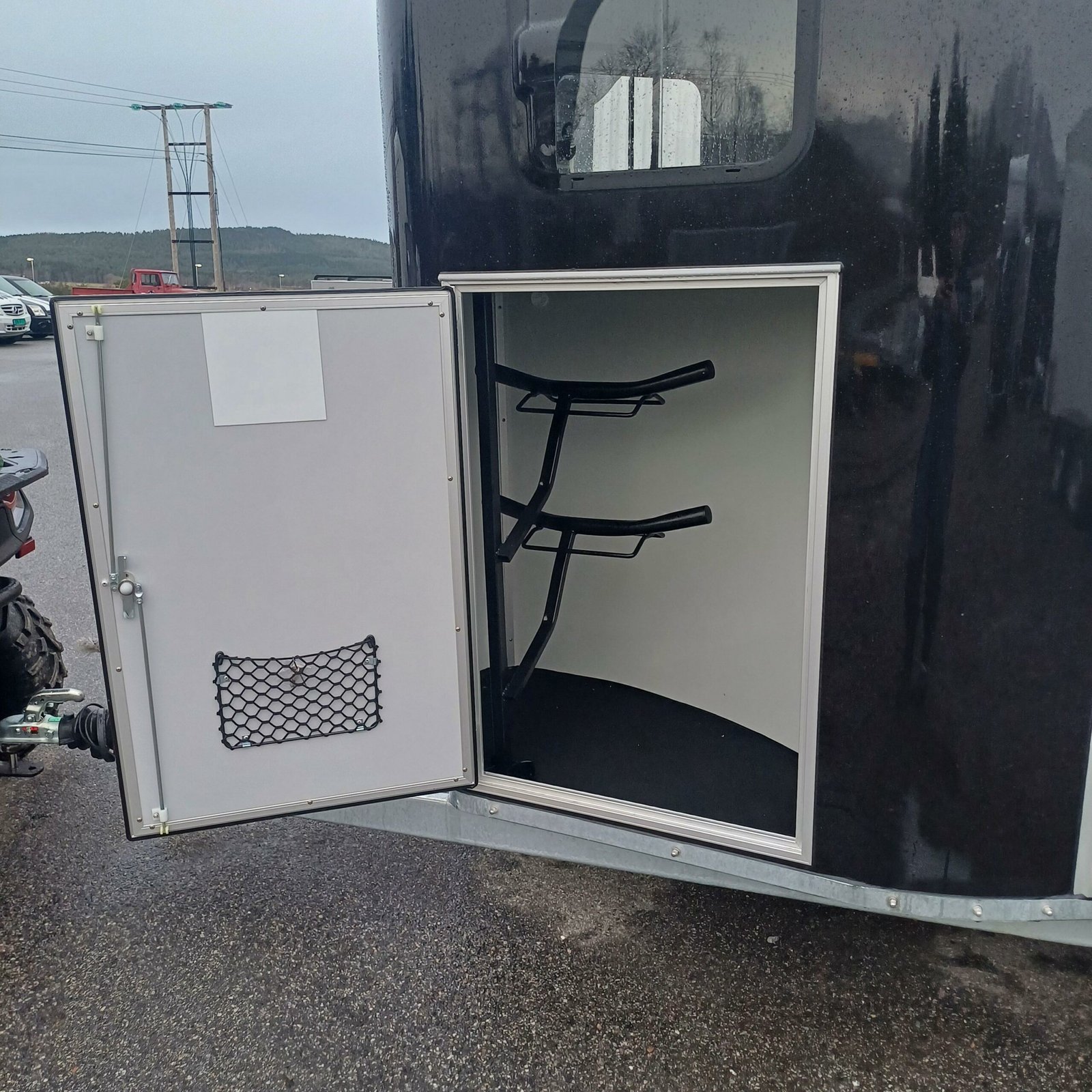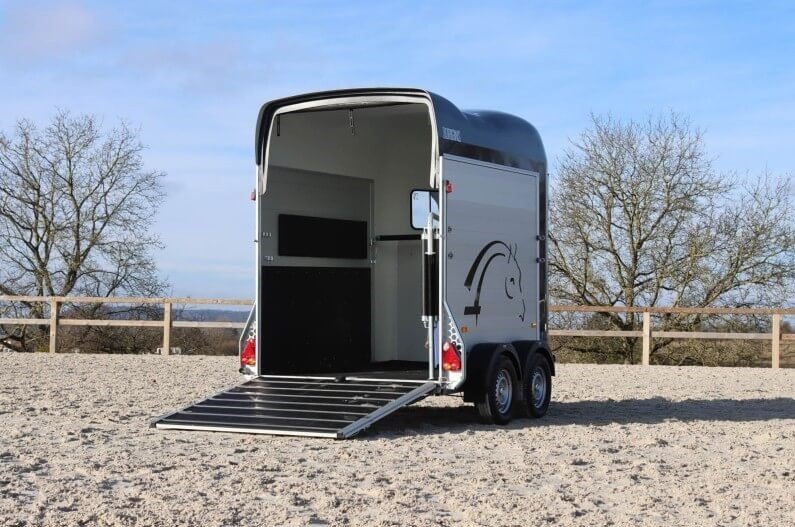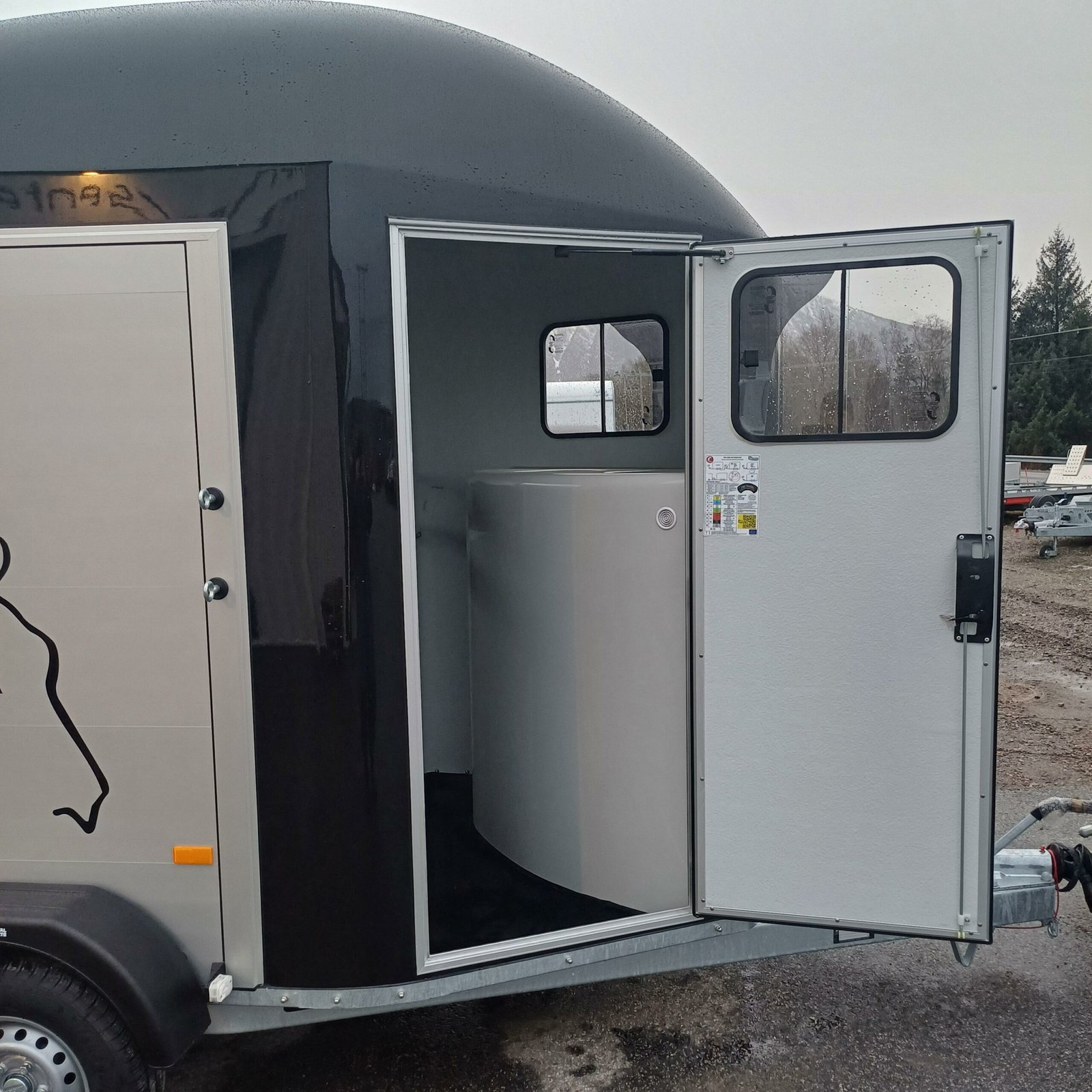 antidérapante en PVC avec cadre en acier Toit et support avant pour poney en polyester Châssis abaissé Rembourrage latéral Plaques de protection Grande fenêtre coulissante des deux côtés avant Suspension à torsion Parois en aluminium SUPPLÉMENTAIRES ÉQUIPEMENT 2 feux de recul supplémentaires 4 feux de recul supplémentaires Jantes en alliage noir ou argent Tapis de sol en caoutchouc supplémentaires Hayon complet Cloison Stallion Pack caméra – Caméra intérieure et/ou caméra de recul Masse d’attelage tribord 150 Coffre de rangement grand format Pneus toutes saisons M+S Immatriculation du poids total autorisé en charge Roue de secours 185/70R13 avec support et housse Roue de secours sur jante en alliage Roue de secours : Housse pour roue de secours Store enrouleur étanche en PVC, largeur : 167 cm Chambre à selle Vitrine MIDI – Bâche, grise, bleue ou verte Vitrine MIDI avec roues pneumatiques – Gris standard Amortisseurs Support de sulky Télescopique 4 sections en acier inoxydable Housse pour timon Porte-cartes de remorque, entièrement assemblé