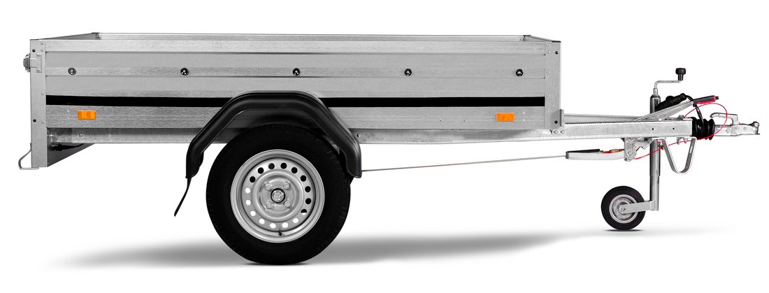 La remorque 1205SB750 est parfaite pour les tâches de bricolage, le camping, le transport de déchets de jardin ou de petits objets. Sa barre de traction en V assure une conduite stable, et elle peut être rangée verticalement pour économiser de l’espace. De plus, elle offre un large choix d’accessoires pour s’adapter à tous vos besoins. Les images sont à titre illustratif et peuvent montrer des équipements optionnels.