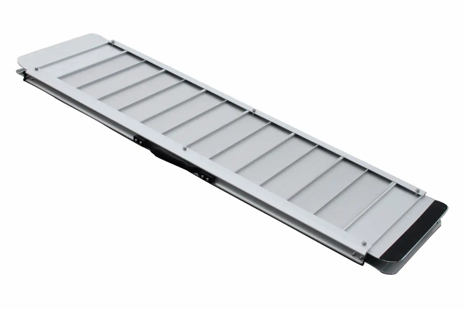 Rampe aluminium pliable compacte 900 mm – idéale pour un usage simple et transport facile jusqu’à 270 kg.