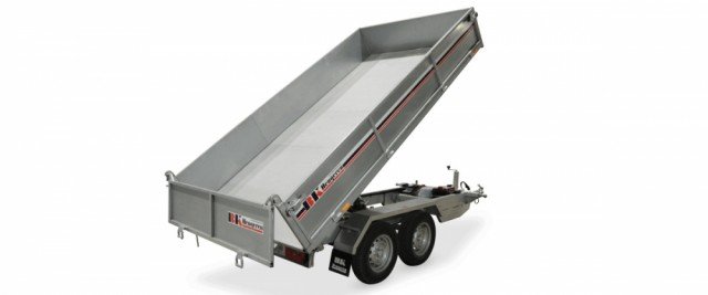 Remorque benne triaxiale puissante avec benne basculante électrique. Entièrement soudée et galvanisée à chaud, elle est dotée de longerons latéraux renforcés, d’une benne basculante/trappe et d’une trappe avant avec cadres en acier épais amovibles. Son fond en acier lui confère une grande robustesse et la rend idéale pour le transport de gravier et de terre. Elle est également équipée d’une trappe à déchets, d’une pompe électrique et d’une pompe de secours. Une télécommande sans fil peut être fournie en option. Une protection supplémentaire pour les trappes arrière est également disponible. Poids total à la livraison : 3 500 kg.