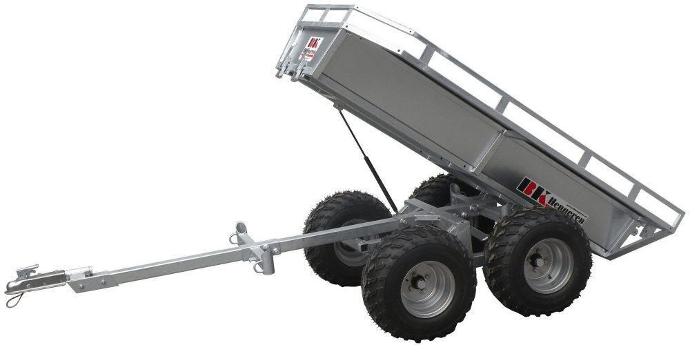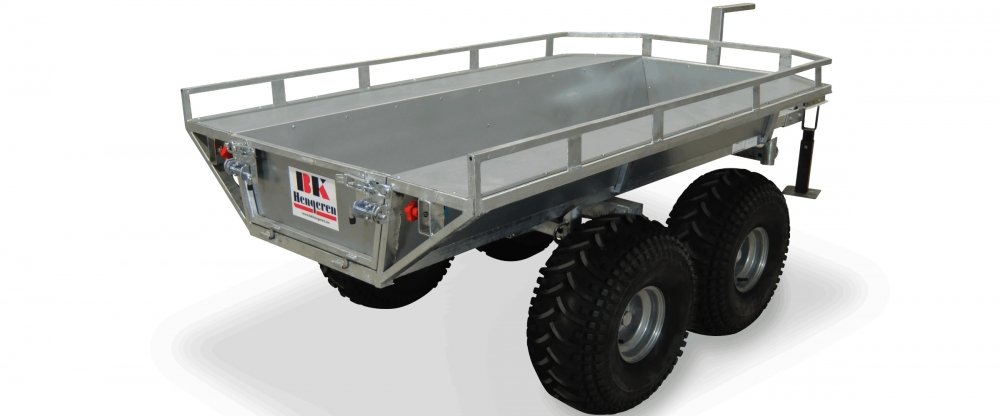 Grâce à ses grandes roues et sa construction solide, cette remorque peut être utilisée derrière un quad ou un VTT, et est immatriculable pour la route si elle est équipée de feux et réflecteurs.